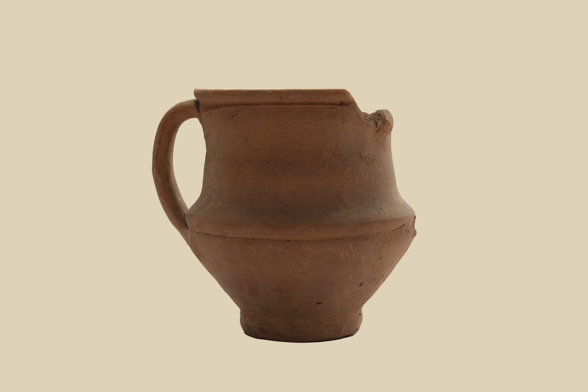 Parte del corredo di una tomba rinvenuta casualmente nel 1961 durante lavori sui servizi. La tomba (t.2) aveva struttura alla cappuccina, con laterizi disposti a formare una specie di tetto a doppio spiovente, era larga 53 cm e alta, al colmo, 43 cm.
