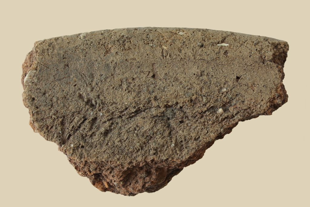 Si conserva il bordo arrotondato e parte della base di un testo da pane. Diametro ricostruito 45 cm.