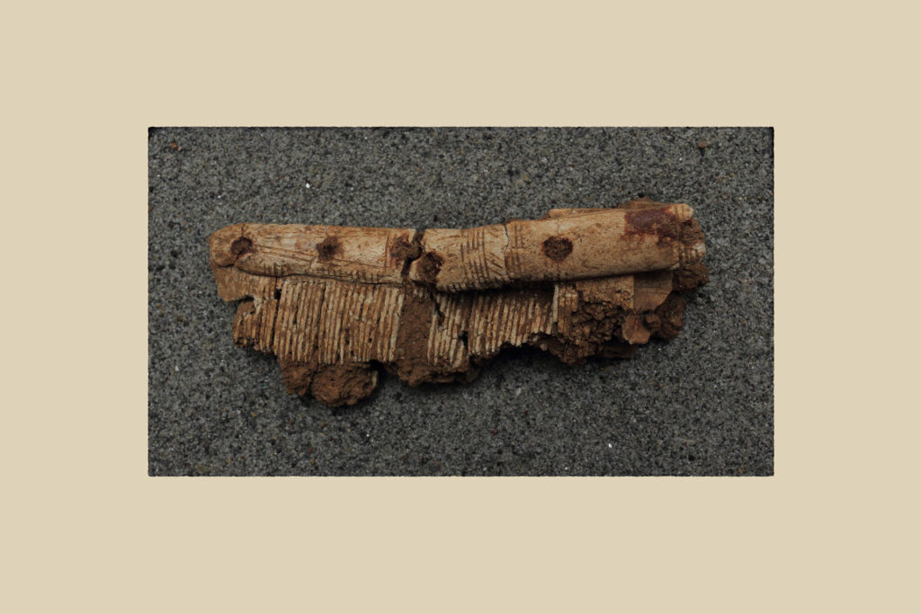 I pettini costituivano parte del corredo della tomba 79: si tratta di due(?) pettini che sono stati mantenuti, durante e dopo il restauro, con la terra di rinvenimento per garantire la conservazione dei denti, che diversamente sarebbero andati distrutti.