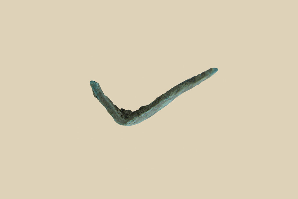 Frammento di bronzo a sezione quadrangolare ripiegato pertinente ad oggetto non identificabile