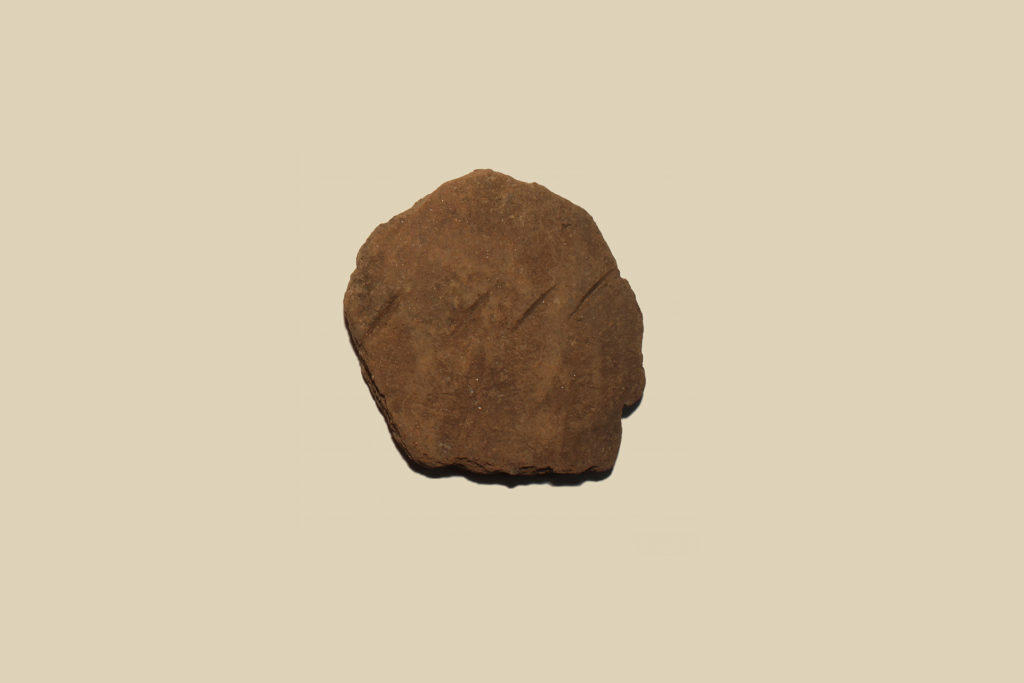 Si conserva un frammento di parete convessa decorata da una serie orizzontale di brevi tacche impresse. Ceramica eseguita a mano.