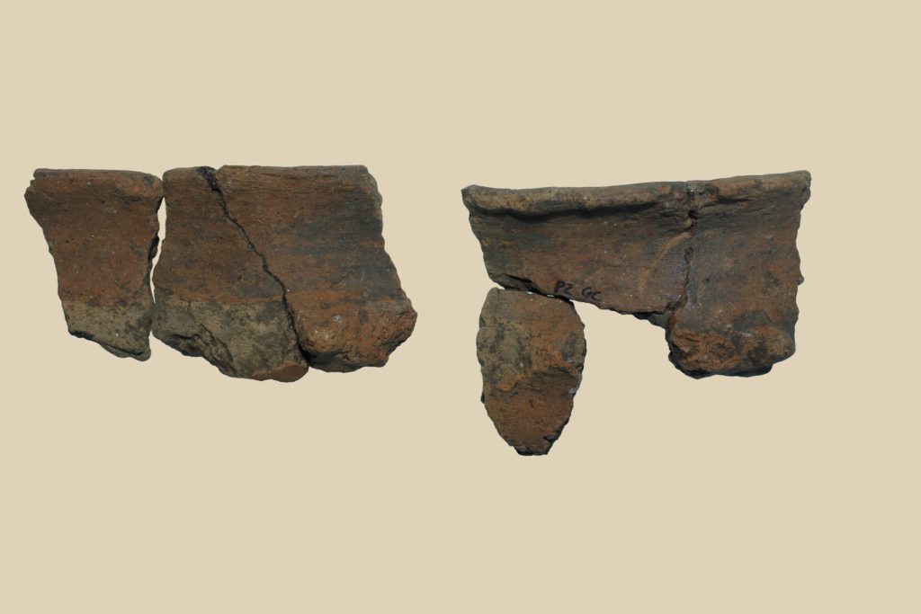 Olla ovoidale, orlo everso, spalla arrotondata, parete convessa, mancante di fondo. Ceramica eseguita a mano. Diametro 16 cm