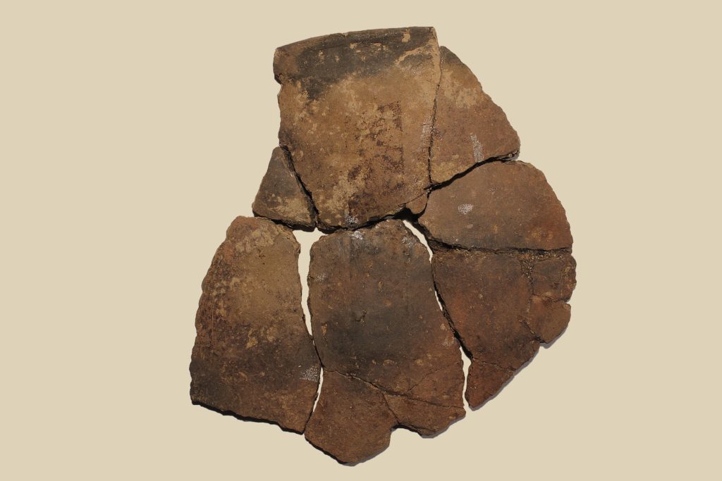 Orlo indistinto, bordo leggermente ingrossato all’esterno, parete convessa mancante di fondo. Ceramica eseguita a mano. Diametro ricostruito 20 cm