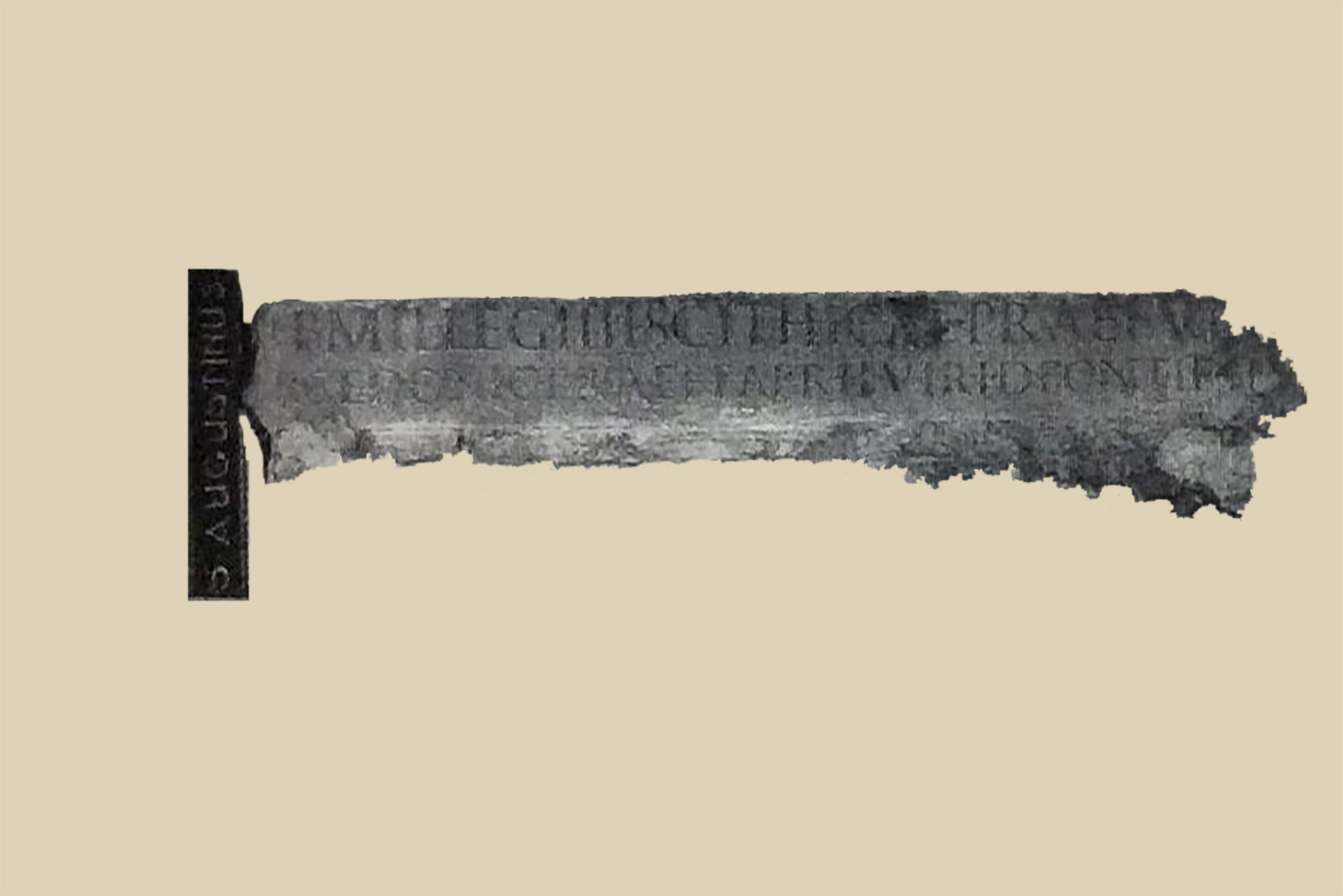 Due frammenti di architrave o lastra in pietra di Botticino incisa a scalpello. Attualmente conservata in loco. Dimensioni: H 33 cm e L 212 cm; H 34 cm e L 254 cm.