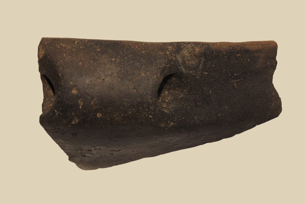 Orlo indistinto a bordo arrotondato, parete superiore a profilo concavo, carena arrotondata, vasca a profilo dritto, mancante di fondo. Tra orlo e carena è impostata un’ansa canaliculata. Ceramica eseguita a mano. Diametro ricostruito 17 cm